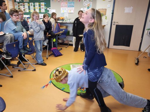 Dort begegneten sie der schönen Prinzessin Europa und dem mächtigen Gott Zeus. Der Sage nach verwandelte sich Zeus, der sich unsterblich in die Prinzessin verliebt hatte, in einen prächtigen Stier, um Europa kennenzulernen. Mutig stieg diese auf den Rücken des Stieres und gemeinsam ritten sie über das Meer bis zur Insel Kreta. Nach der Prinzessin wurde schließlich unser Kontinent benannt: Europa. Mit viel Fantasie, großer Begeisterung und viel Lachen schlüpften die Kinder der 4a in ihre Rollen und spielten die Sage nach. So wurde die alte Geschichte auf lebendige Weise zum Auftakt unseres Europathemas.