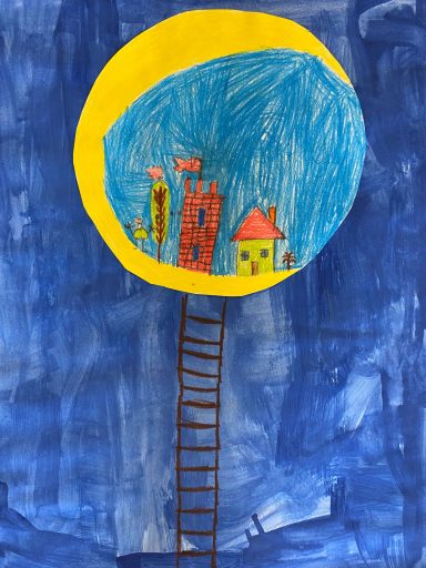 Nachdem man die Häuser gemalt hat, kamen die Fenster in die Häuser. Die Fenster haben verschiedene Formen. Nach den Fenstern bekommen die Häuser Gesichter und dann kann man sie mit verschiedenen Farben ausmalen. Die Fenster wurden meistens gelb.