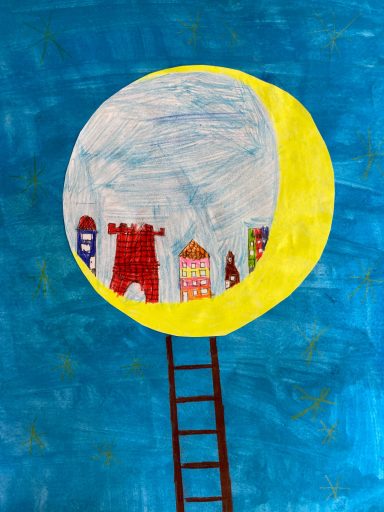 Im Kunstunterricht haben wir Bilder wie der Künstler Rizzi gemacht. Wir haben angefangen mit dem Skizzieren der Häuser, was das schwierigste war, da man verschiedene Ideen braucht.
