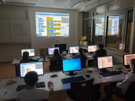 An mehreren Stationen im Gebäude konnten die Kinder selbst aktiv werden und unterschiedliche Fachbereiche kennenlernen. In der Schulküche wurden eifrig kleine Cakes in der Waffel gebacken, während in einem Klassenzimmer der Einsatz von Tablets im Unterricht demonstriert wurde. Erste Schritte im Programmieren konnten sie im Computerraum beim Erstellen eines Rennspiels ausprobieren, während im Werkraum mit viel Begeisterung eigene kleine Herzen aus Holz entstanden.
